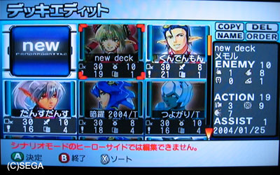 2011/03/10 Category : ゲーム 悲願 ついに手に入りました・・・!! 炎杖アグニがっ!(ハード坑道にて) 引っ張っておいてなんだと、なんで今更かと。 はい、わかります、わたしもそう思います。 だが驚きではないか、FOが居るのに今の今まで持っていなかったというのが。 それが一周の間に2個も手に入るんだから、これがわからない。 まぁGCPSO自体調整も緩めで、当時そこまで最大効率に躍起になる必要も無かったから特別探しもしなかったんだけど。 しかし改めてやってるとフォース強い強い。 育てるのに手間掛かるだけはある、全開補助にしたらUltの敵のダメージは通らない。 相手の攻撃を体で受けながら魔法を連打する機械の完成だ! PSZでもエラ強いFO、出来ればレイキャシールもですね・・・ ついでにEP3も動かしてみた。 デッキの最終更新日時が2004/01/25。 買って2ヶ月も遊んでねぇなコレは・・・ 何がそんなに悪かったんだろうと、これも今更ながら振り返りつつ遊んでたんだけど、一つに自分のキャラが指揮官とか言う立場になって画面外におかれたこと。 この頃から物語の展開が公式キャラを中心にシフトして、プレイヤーの分身が介入し辛くなった。 PSOでストーリー・キャラが薄いなんていう批評があったことへの解にはなったんだろうけど、個人的には公式キャラそんなに興味なんかねーよと言いたい。 その後PSUに続いていったことを考えれば、ここで方向性は見えていたのか。 あと一つがデッキ構築の時間、これが超絶PSOの時間配分とかみ合わなかった。 PSOはオンしてすぐ容易に遊べるのに対して、EP3は一人で準備する時間が長すぎた。 EP3を本格的にやろうとすると、結果的にオンから遠ざかる時間が増えるというこのジレンマ。 しかもカード資産がゲーム性を広げる唯一の手段なのに、これが手に入りにくい。 それも勝負に負けるともらえるカードの枚数が減る! つまり負け越してるといつまでたっても面白くなってこないのだ。 それを打開するために考えて構築するのが面白みなので今こうして遊ぶ分には面白いんだけど、オンを考えるとさっきのジレンマに陥るという。 なんとも勿体無い感じのゲームである。 これからボチボチ7年越しで見てないエンディングでも見てみようと思います。 ・・・まだメガテン3のアマラルート、さらにおまけのライドウ対アバドン王を積んでおるというにヾ(´ー`)ノ PR Comment0 Comment Comment Form お名前name タイトルtitle メールアドレスmail address URLurl コメントcomment パスワードpassword