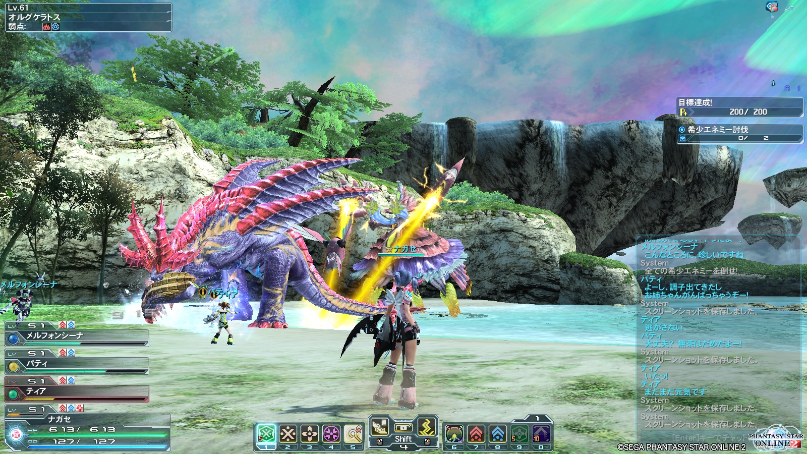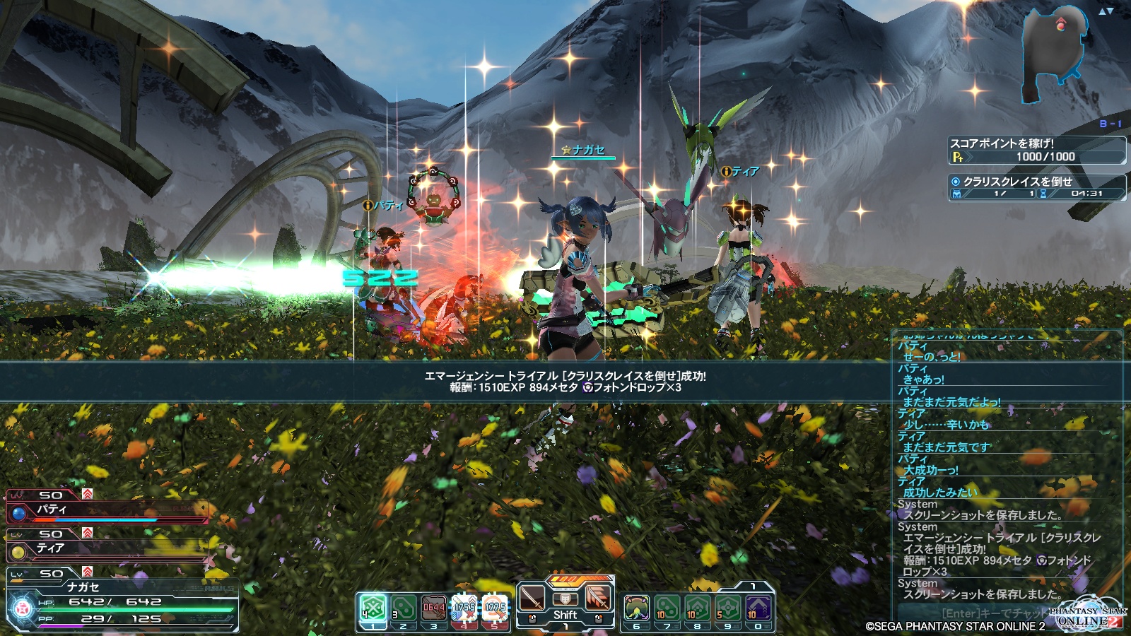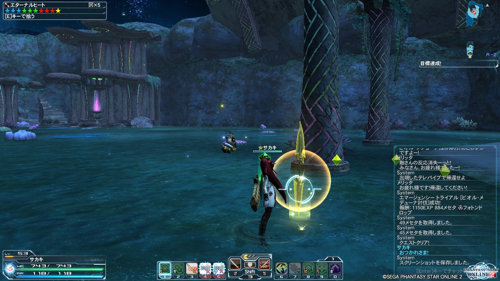 2014/01/26 Category : PSO2 PSO2雑記 ドリームキャス子ちゃん変身マスク。 かさの高さがもはやPCFX。 500FUNで購入。 サターン子ちゃんにもなれるよ。 海岸のシングルクエストでオーダー消化してたら久々のパラレルエリア。 短いウォータースライダーの先にはオルグ・ピオル両ボスのレア種が。 SHだったので半ばクリアを諦めてはいたんだけど、チキン戦法でひたすらナメギドを撃つ作業でなんとかクリアできた。 ちなみにレアはでなかtt オルグから潰した方が事故が少ないか。 4度目くらいのパラレルだけど、いろいろフィールドも違うのね。 ヘタしたら一度も見ない所もあるだろうなあ。 しかし今回のイベントはわりといい感じ。 まぁパネルとかPSUでやってたようなイベントなんだけど、そんなのさえ今まで無かったのでは。 なにより嫌がらせがない。 いつでもマルチプレイで周れる常設イベントクエストができた事で、緊急さえやっとけばいい的な雰囲気もとりあえず薄らいだ。 今のうちにごろっと通常クエストのバランス調整をやるべき。 ----------------------------------------------