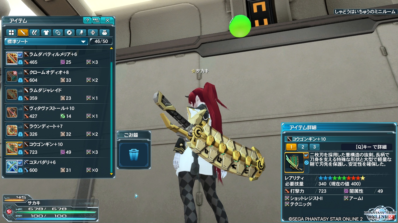 HDDの削除事件で世間を賑わせた相変わらずのPSO2ですが、コツコツと新フィールドに通ってようやく☆10カタナのコウゴンギンを手に入れた!
