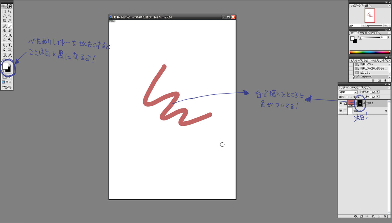 もちろん新規レイヤー上に描きますよ。