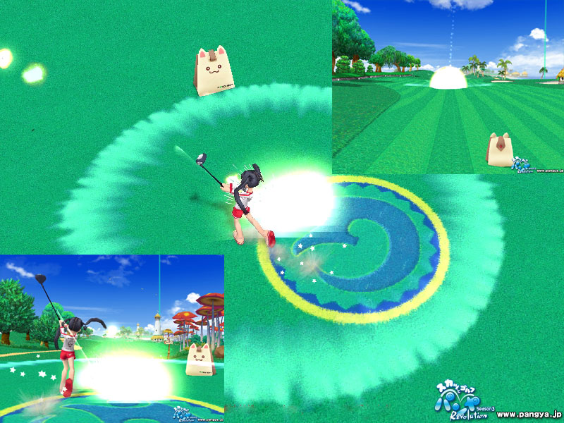 2008/05/07 Category : PSU 報酬期間終了 ついでにGBRも終了。 何かやり残しは無いか? ドロップについては、割と序盤にナスヨテリ基板を手に入れたもんで、もうデイズGBRには未練もない。 惜しむべくは、カンウーやらルゥカーなんていう実用を考えてたS武器に限って軒並み10%台の属性が付くとかもうね。 いや、もういいんだ(´_`) 明日のメンテでモトゥブレリクス登場。 何が出るんだろう。 GWも佳境(というか2日前)に、折角PCも新調したことだしということでパンヤ今更始めてみました。 トマホークショーット! 10回に1回くらい成功します(゚д゚) パンヤ界のジャンボ尾崎にはほど遠い。 大会を何回かやったけど、周りはすごいスコアで周ってるなおい。 技とかアイテムを駆使しないといけないんだろうなぁ。