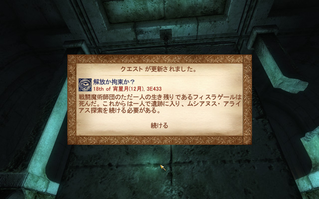 2009/09/22 Category : oblivion メイジ大学での一日。 メイジ大学の学長から、消息不明の学生の救出を託されたalicia。 一路、行方の途絶えたとされるアイレイド遺跡へ。 するとそこには先遣部隊として派遣された戦闘魔術部部員が一人、こちらを見るなり駆け寄ってきた。 事情を聞くに、どうやら捜索中の学生は魔術師と敵対する死霊術師の一団に潜入していたらしく、生死も不明。 また先遣部隊も死霊術師との戦闘になり、生き残ったのはフィスラゲール彼一人のようだ。 「時間を無駄にはできない! さあ、着いて来い!」 酷く荒れた呼吸で一部始終を語ったフィスラゲールは、すぐさま武器のメイスを手に取り遺跡を駆け出した! alicia「待て!アイレイド遺跡には古代人の仕掛けた無数の罠が・・・!」 しかしaliciaの言葉は彼に届かない。 そして彼がある一画に差し掛かった時だった。 ごごごごごごごごg ずしーーーーーーーーーーーーーーん ででんっ(効果音 ・ ・・ ・・・ 「ヤムチャさあああああああああああん!」 そんな秋の日の・・・オブリビオン。 -------------------------------------------------------------------------------- ところで本題はこっちなんだけど、オブリビオン始めて「シャドウハイチュウ」っていう検索ワードで引っかかって来る人がやたら多くて毎度わろてしまうので、勝手ながら一応補足説明させていただく。 シャドウハイチュウは決してハイチュウの新製品などではなく、海外RPG、Oblivionの数ある空耳の一つである。 ゲーム中、盗賊ギルドの構成員同士が別れの際、「Shadow Hide You(影と共にあれ)」 と掛け合うのだが、何だか「シャドウハイチュウ」と聴こえなくも無いというもの。 動画で見るシャドウハイチュウ ネタバレ注意。 動画の3:30頃からシャドウハイチュウ。 【ニコニコ動画】Oblivion プレイ動画 テクテク冒険記 part57 え!?もしかして・・・コレ?! ・・・つづく PR Comment0 Comment Comment Form お名前name タイトルtitle メールアドレスmail address URLurl コメントcomment パスワードpassword
