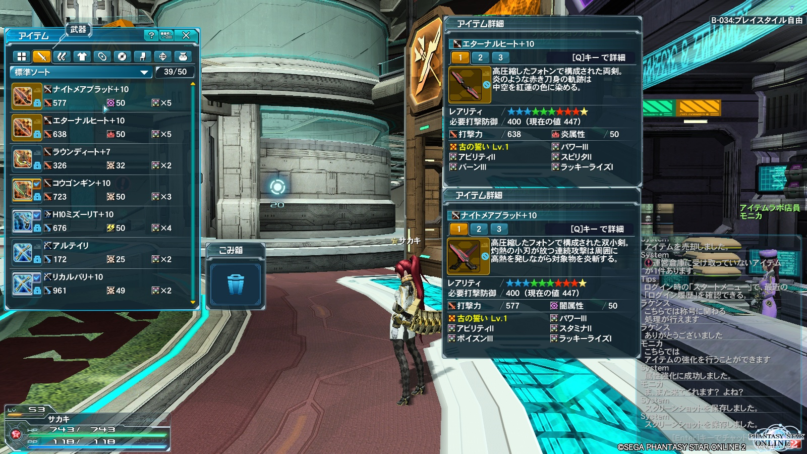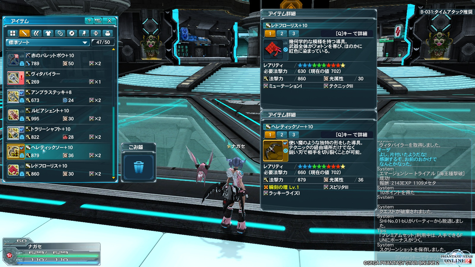 2014/01/18 Category : PSO2 促進キャンペーン 新しいマターボードの景品に全職装備可能なダブセとダガーが追加されたので拾いに行ったんだけど、結局ドロップ確定ゲージが最大になるまで落ちなかったというあれ。 年末年始の数日間、武器強化の成功率5%アップキャンペーンだったのでそれに何とか間に合わせ、折角なので初めて潜在解放もしてみた。 当初は考えられなかったが、的を絞った強化しかしてこなかったのでメセタはそこそこ貯まってはいたので。 ---------------------------------- 結果、潜在解放1+10までに2本で1mちょいというところ。 (グラインダーやリスク軽減は元から持ってるものを使ったので総額には含めず) まあまあうまくいった方なのだろうか。 ただ作ってから思ったけど、ファイター武器は今のところ使いどころが少ない。 さらに作ってから気づいた、「古の誓い」というのは弱点属性相手にしか10%アップ効果が乗らない。 不完全燃焼なので、緊急クエストで拾ったタリス「ヘレティックソー」も勢いで潜在解放。 効果はテクニックのジャストアタック効果が3%アップ。 これはそこそこ強くなっただろうと思ったけど、下の輝石交換武器レドフローリスと大差無し\(^o^)/ 大枚はたいて無理に潜在解放とかしなくてもいい気がした。 今回で貯めこんだグラインダーも底を尽きてしばらく強化は小休止。 (一束無くなったから買えば1m以上吹き飛んでる) とりあえず潜在解放は無理にしなくていいという結論。 この間新要素が追加されるたびに記事は書いてたんだけど、公開するまえにどんどん追加されてるもんだから、もはやどこから手をつけてよいのやら状態。 直近ではクラフトという弱い武器をベース強化したり、テクニックの性能を変えたりできる要素が追加されたけど、あまり労力に見合った感じでもなさそうだし、なによりメンドイというのが先に来てしまうのでこれまた放置か。 上記の通り輝石交換武器で十分。 どうもPSO2の調整はあまりに極端で、ブレイバーが一瞬で最強になったり、今まで10個の入場券が必要だったアドバンスクエストが1個でよくなったりと、相変わらずほっとけばいい感じ。 エクストリームクエスト、まだ一度もやった事が無いので緩和お待ちしています(◜◡◝) ------------------------------------------ PR Comment0 Comment Comment Form お名前name タイトルtitle メールアドレスmail address URLurl コメントcomment パスワードpassword